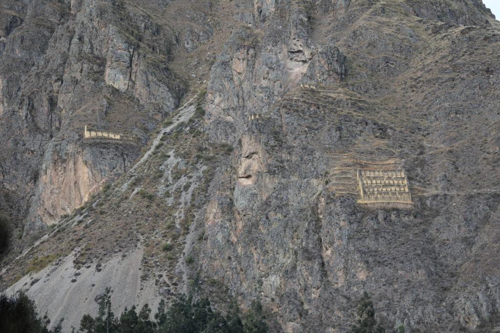 A romokkal szembeni hegy oldalában emberek által faragott Inka király képe figyelhető meg.