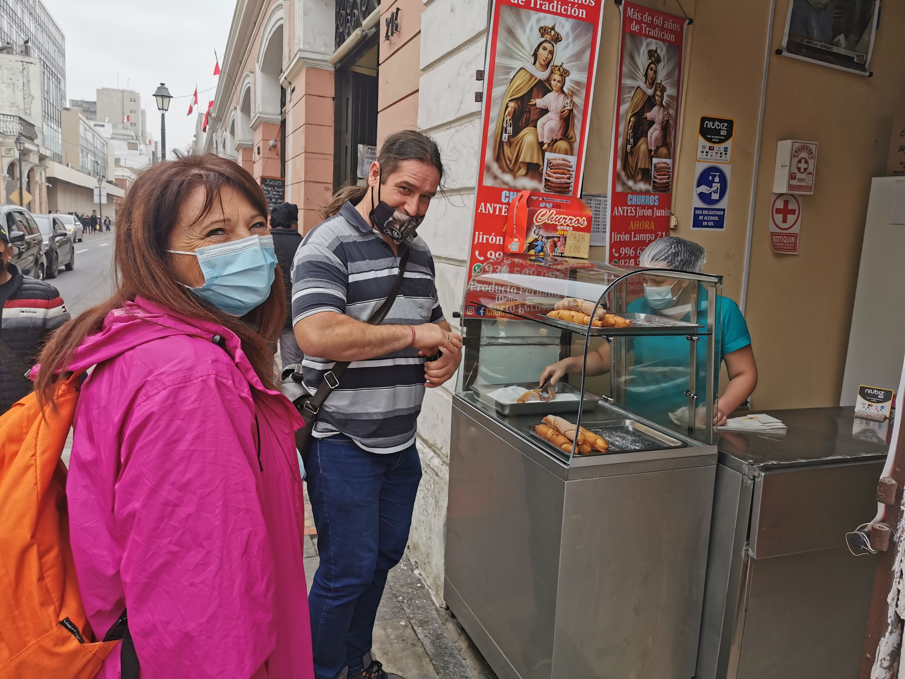 Gáborral megismerkedtünk és idegenvezett minket, illetve beneveztünk egy kis Churros-ra is, ami eredetileg egy spanyol édesség, hosszúkás fánk és csokiba kell mártogatni. A Peruiak átvették és átalakitották saját ízlésükre. Nagyon fini!