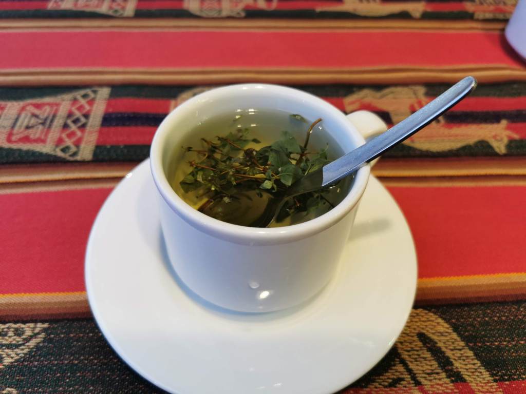 Muña tea, ami mentolos gyógytea. Nem gondolják túl a peruiak a teát, tea filtert csak egy helyen láttam, inkább beledobják a fél bokrot a forró vízbe.
