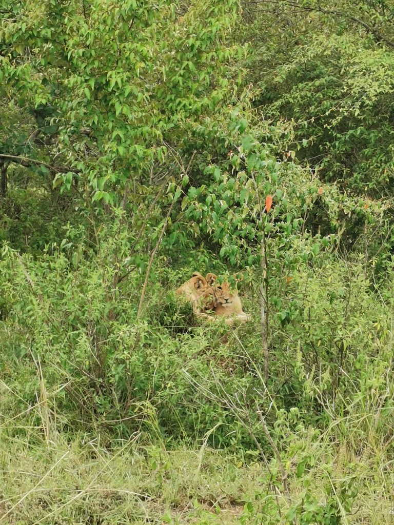Második nap fénypontja a leopárd volt. Délelőtt álltunk egy kicsit egy fánál, mert egy fél impala lógott az ágak között, gondolták a vezetők, hogy hátha visszajön érte a leopárd. A fa körbe volt nőve bokorral, és azt is mondták a vezetők, hogy lehet, hogy ott bujkál. Tovább álltunk időnk szűkében siker nélkül. Egy gyors bozót pisi után kapott egy fülest Moses egy oroszlán családról. Az is tetszett, hogy sose mondta el, ha hallott valamit a rádión (Swahili-ül beszéltek), hogy milyen állatról van szó. Onnan tudtuk, hogy kapás van, hogy rálépett a gázpedálra és árkon bokron, értsd ahogy mondom, száguldottunk a helyszínre. Jó volt így, mert csalódottak lettünk volna, ha nem érjük el. Park szabályzat, hogy maximum 5 autó vehet körbe egy állatot, úgyhogy erre is figyelni kellett, és parkőrök (ranger-ök) járták a szavannát, hogy biztos be legyenek tartva a szabályok. Persze a sofőrök jelentették egymásnak, hogy merre járnak a ranger-ök. 😅 De az állatokat sose zavartuk szerintem. Annyira nem érdekelte őket, hogy mi ott vagyunk. És ha esetleg kíváncsi vagy, nem, nem hallgatnak a kenyai nagymacskák, arra hogy “cicc-cicc”, pedig nagyon próbálgattuk. Az oroszlán család egyébként épp egy sikeres vadászat után teli hassal fetrengett a bokrokban. Egy Pumbát fogtak, a feje fele és az agyara még megvolt, azon cuppogott egy nőstény. 😅